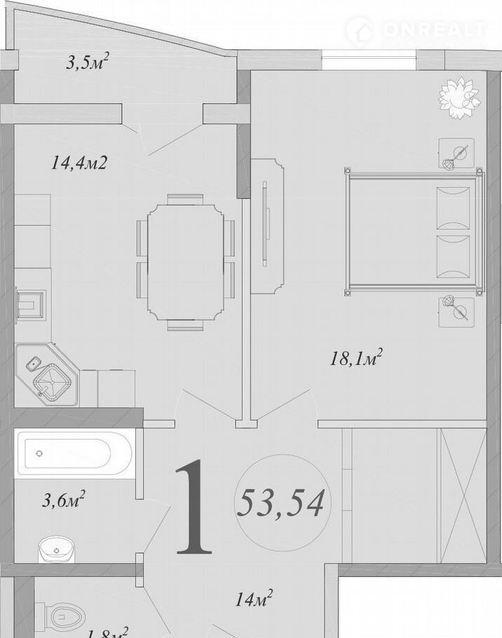 Количество комнат 1