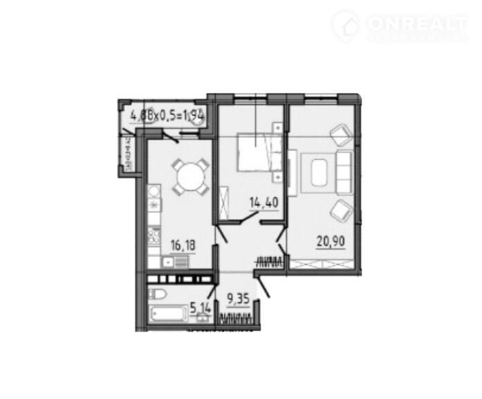 Балкон, лоджия 1 балкон