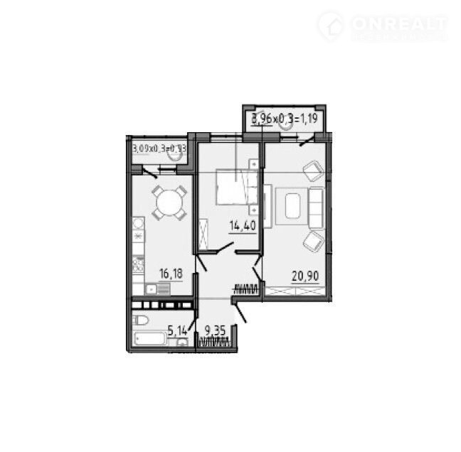 Балкон, лоджия 1 балкон