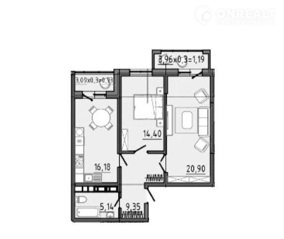 Балкон, лоджия 1 балкон