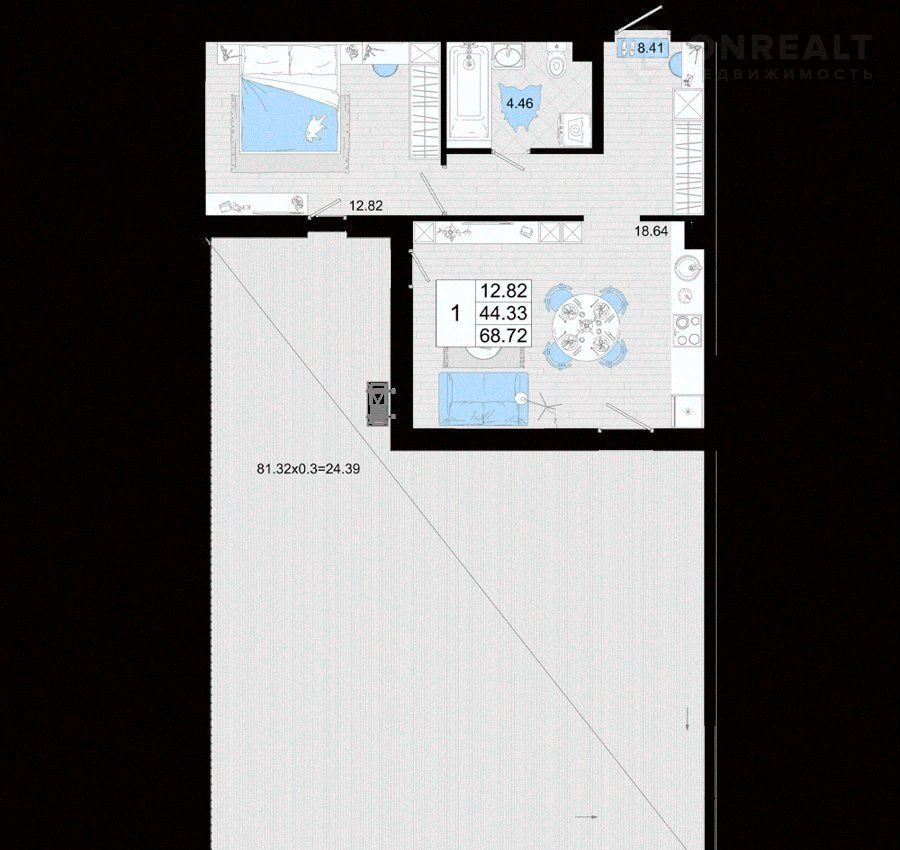 Общая площадь 68.7 м2