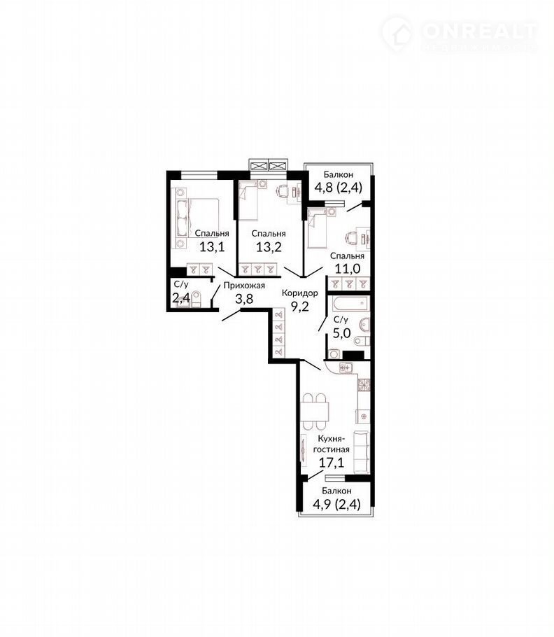 Общая площадь 81.8 м2