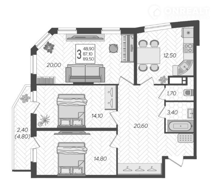 Общая площадь 89.5 м2