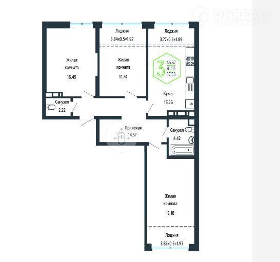 Количество комнат 3