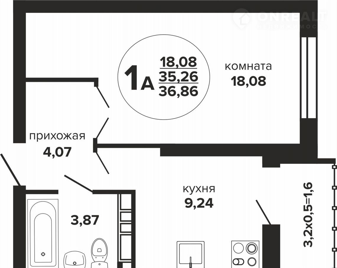 1-комнатная квартира, 36.9 м2, этаж 8 / 24, на продажу в Краснодаре, Российская улица, 257/7 лит2