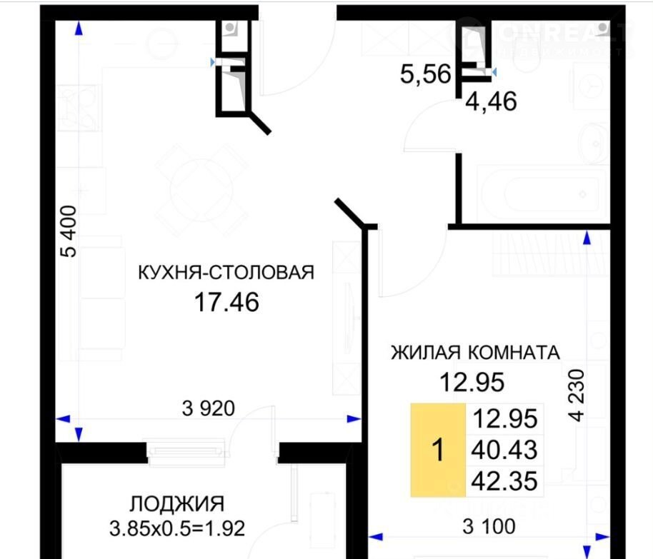 1-комнатная квартира, 40.4 м2, этаж 8 / 18, на продажу в Краснодаре, Старокубанская улица, 2/23к2