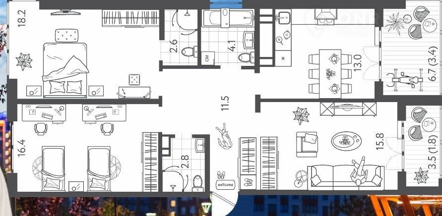 Количество комнат 3