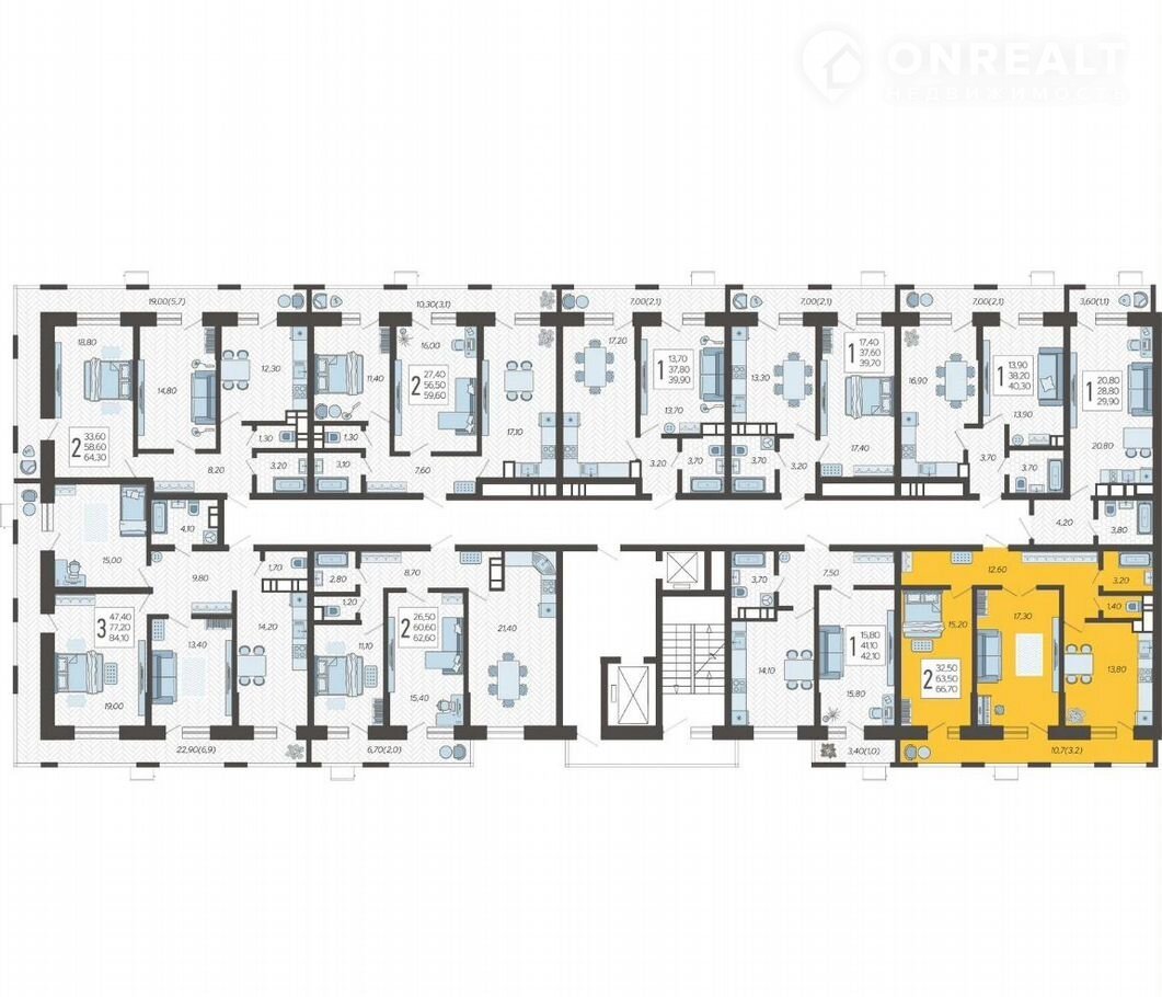 Общая площадь 66.7 м2