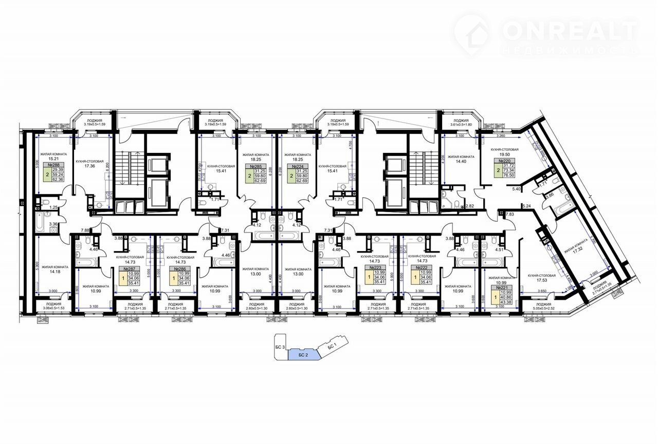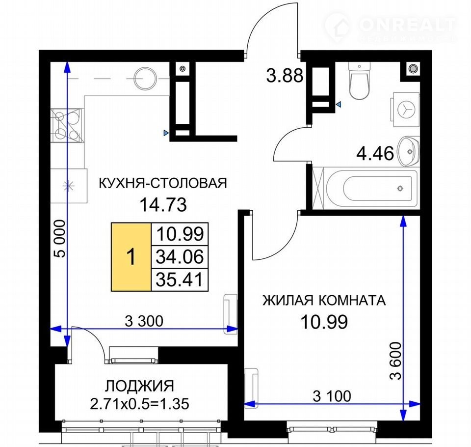 Общая площадь 35.4 м2