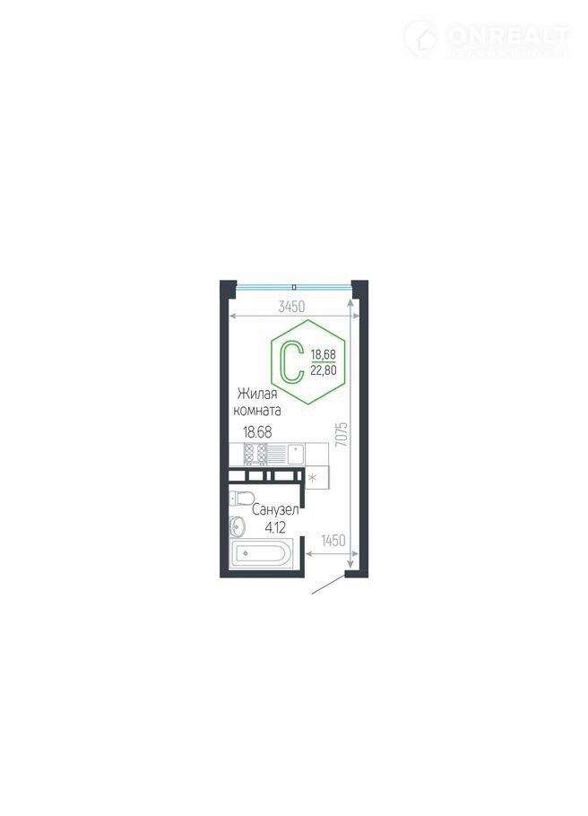 Общая площадь 22.8 м2