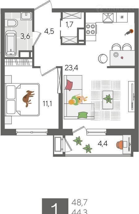 Общая площадь 48.7 м2