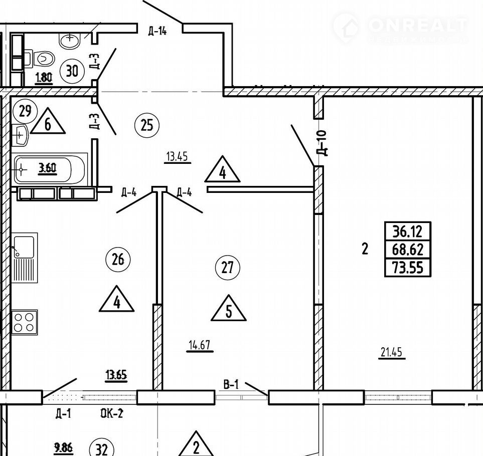 Общая площадь 73.6 м2