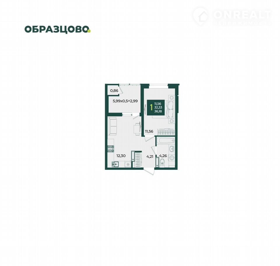 Общая площадь 36.2 м2