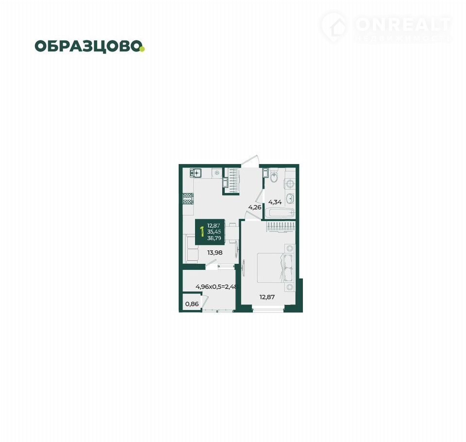 Общая площадь 38.8 м2