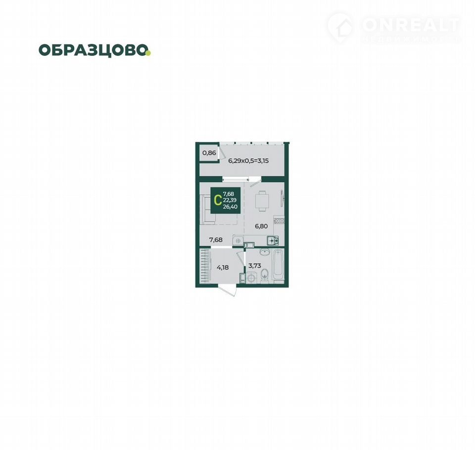 Общая площадь 26.4 м2