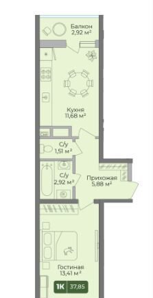 Общая площадь 38.1 м2