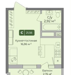 Общая площадь 22 м2