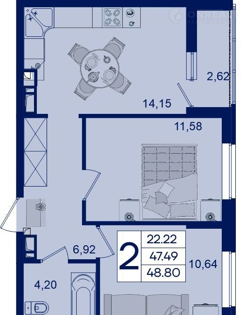 Общая площадь 48.8 м2