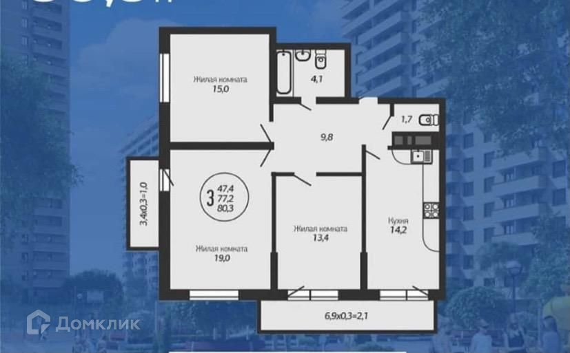Общая площадь 81 м2