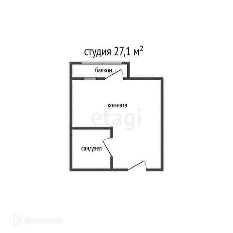 Общая площадь 27.1 м2