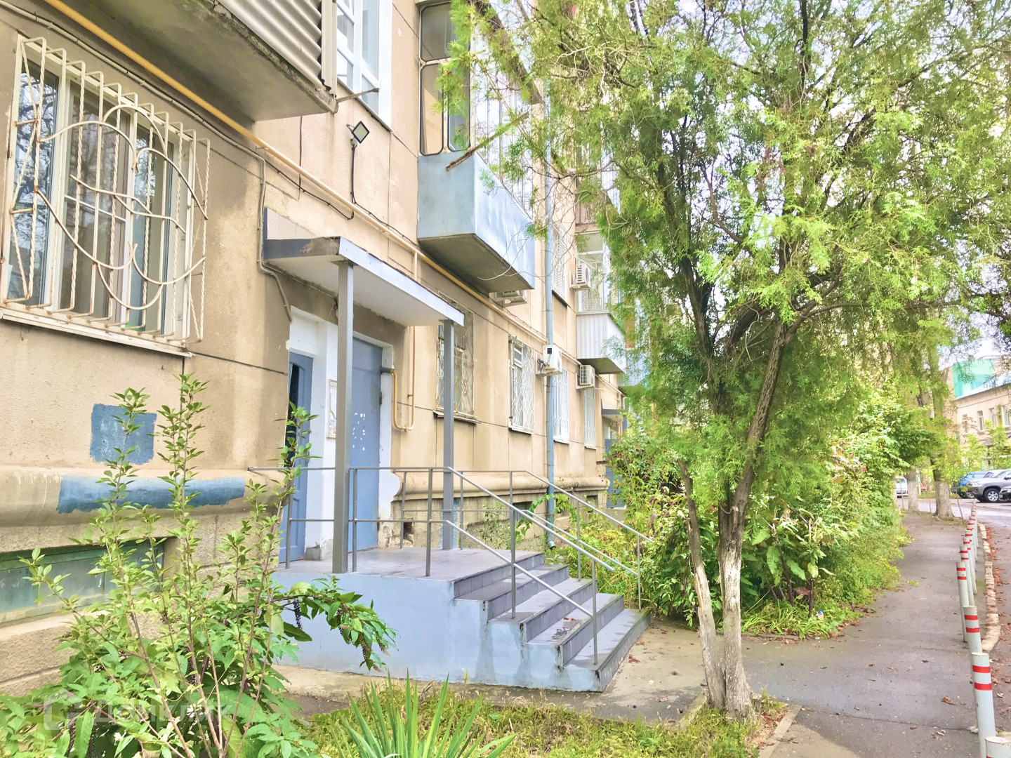 - с высотой потолков 3 метра расположена на первом этаже пятиэтажного дома, окна выходят на две стороны с красивым видом на озелененную улицу и двор