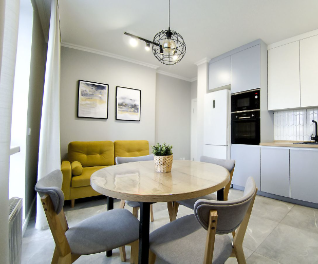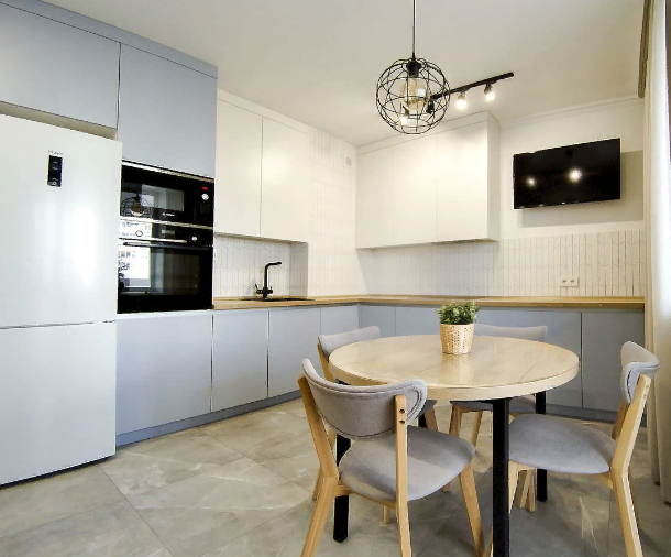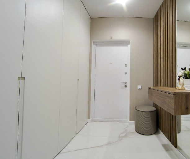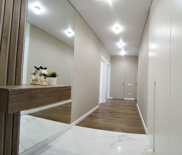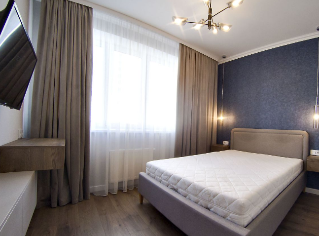 В квартире выполнен отличный, стильный ремонт с использованием качественных материалов. Встроенная кухня, вместительный шкаф-купе в жилой комнате,отдельная гардеробная,новая сантехника, надежные двери и МПО, хорошее освещение. Красивый вид из окон.