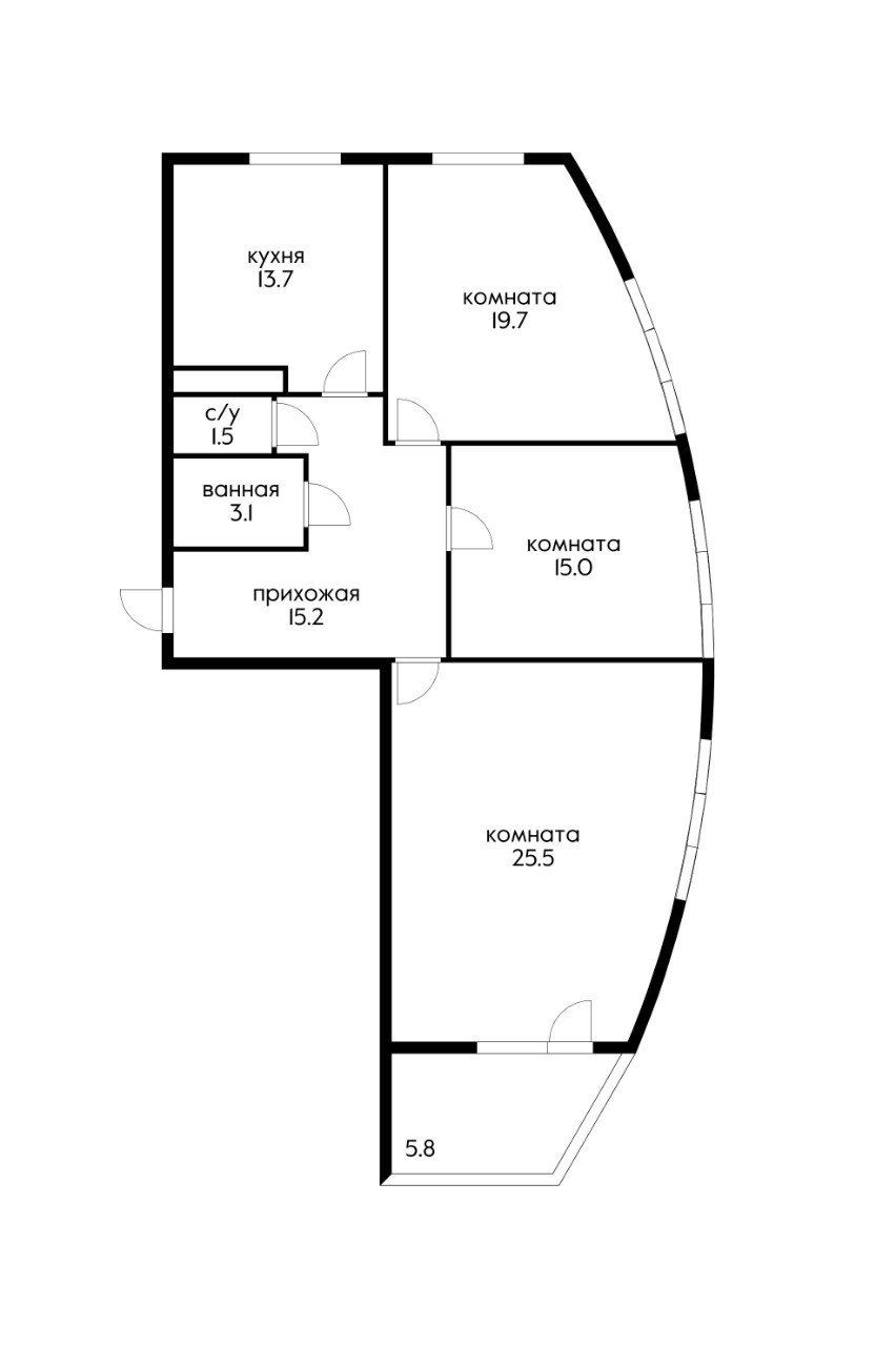 Жилая площадь 59.7 м2
