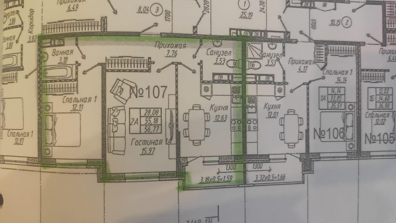 Общая площадь 57 м2