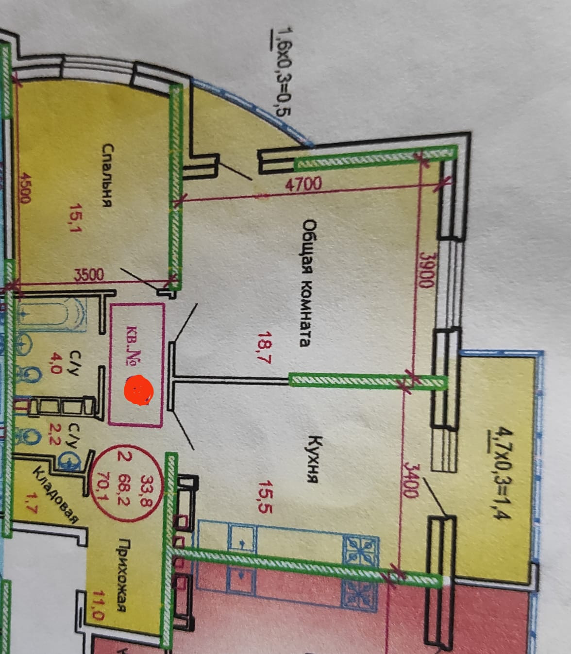 Общая площадь 71.4 м2