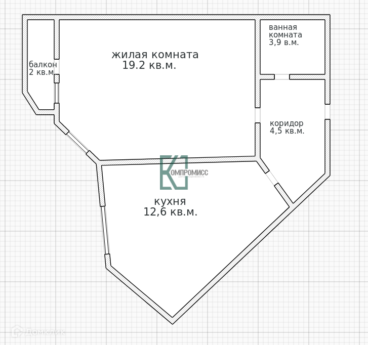 Жилая площадь 19.2 м2
