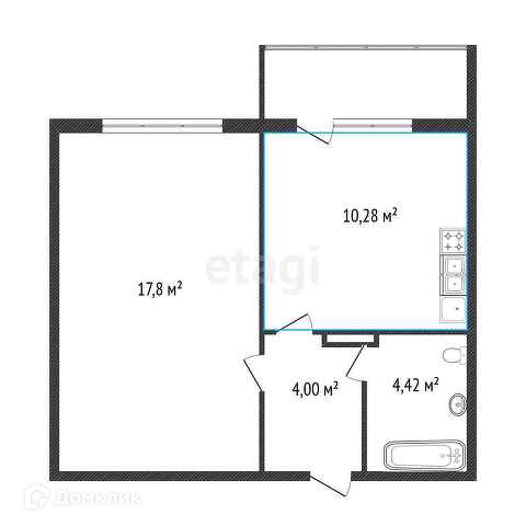 Общая площадь 42.2 м2