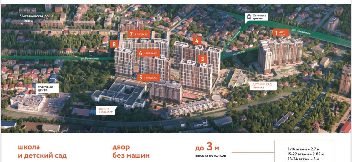Самый центр города. Жилой комплекс строится с социальной инфраструктурой. Во дворе дома, где расположена квартира строится школа. Сбоку детский сад. Первые этажи коммерческие площади, все социально-бытовые услуги на территории комплекса. Удобная транспортная развязка. Французские и витражные окна. Красивый дизайн домов.