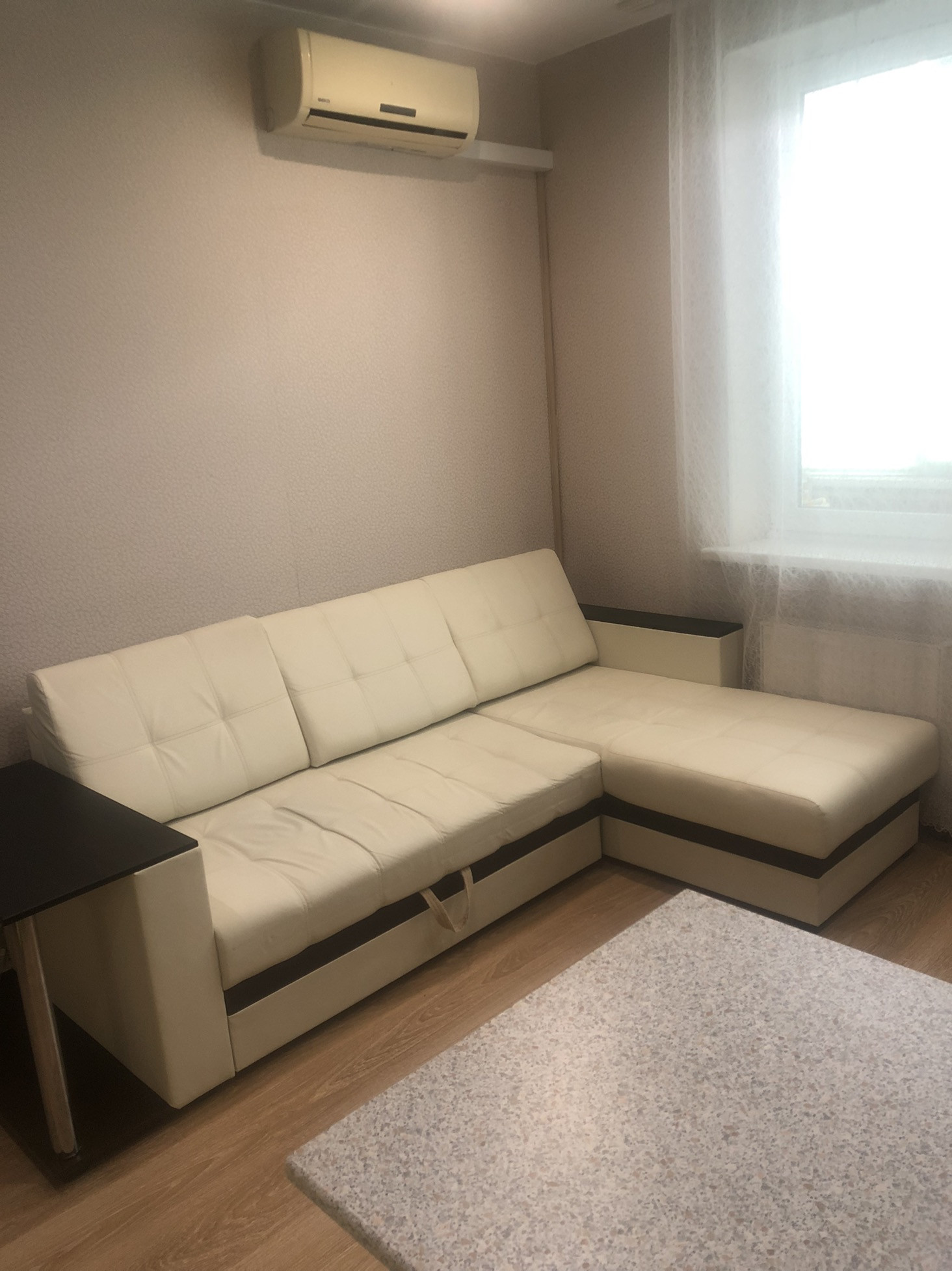 В квартире полностью сделан ремонт,обои, ламинат, готовая кухня, ванная в кафеле, балкон подготовлен к утеплению, пароизолирован.