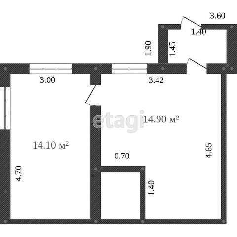 Общая площадь 37.7 м2