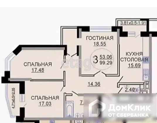 Общая площадь 95.8 м2
