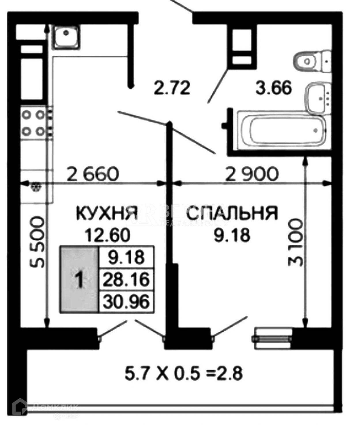 Общая площадь 33 м2