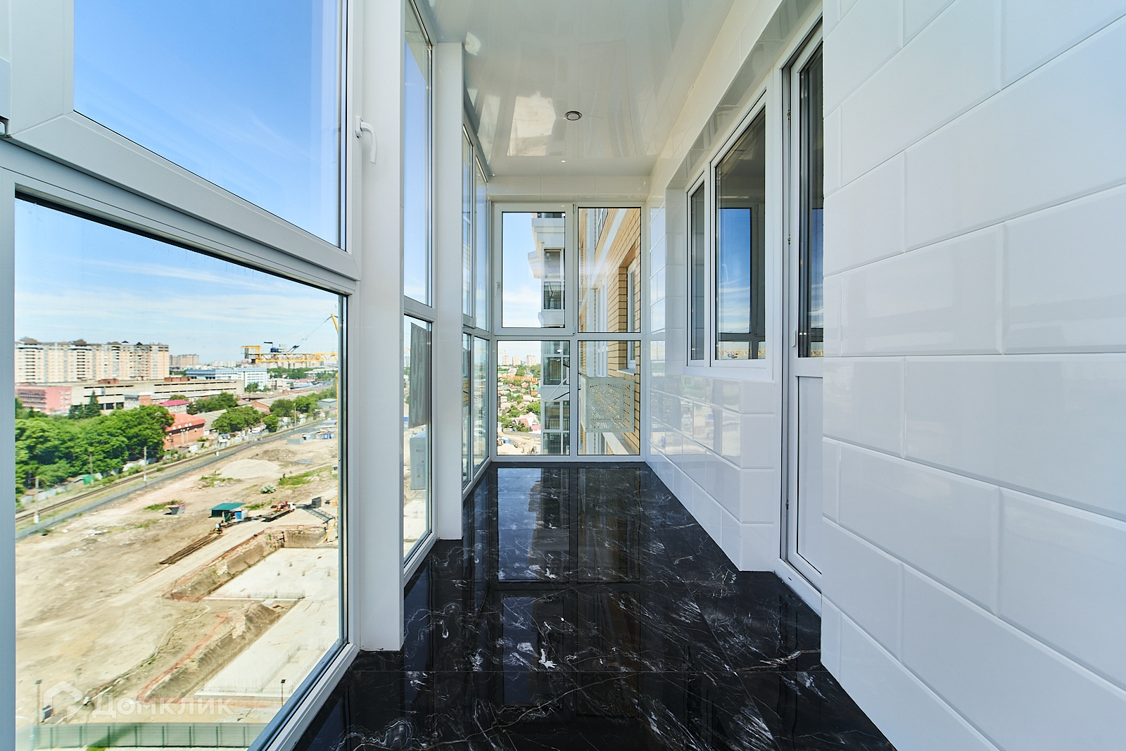 - лоджия на всю ширину студии с панорамным остеклением