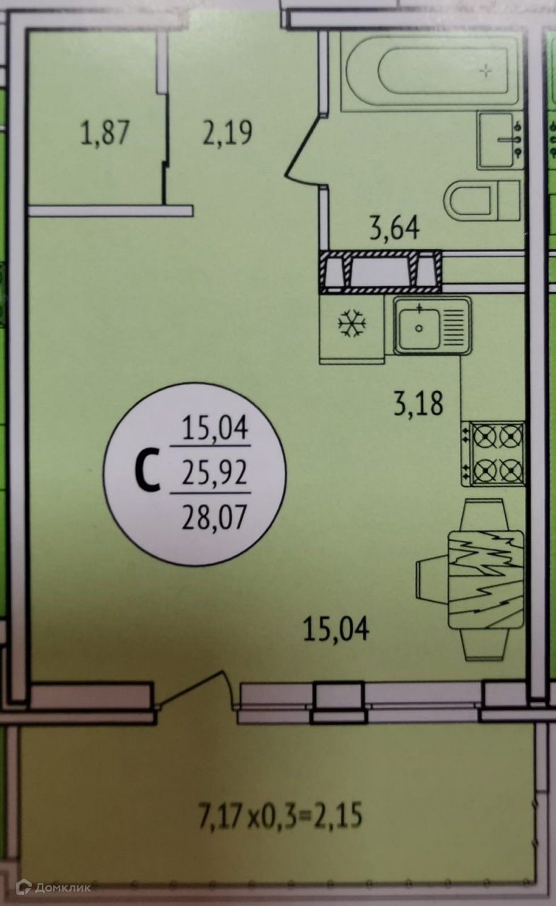 - общая площадь 28,1 кв.м.