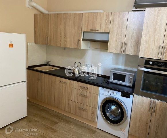 В квартире: - полностью обустроенная кухня; - холодильник; - варочная панель и вытяжка; - духовой шкаф; - стиральная машина; - посудомоечная машина; двухспальная кровать.