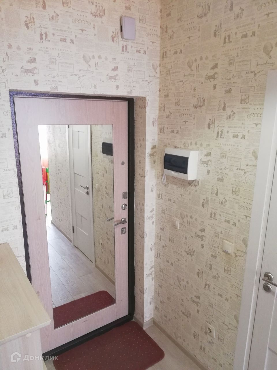 Коридор с зеркальной дверью и с заказной мебелью.