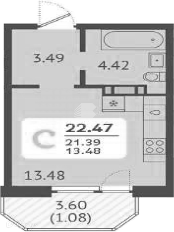 Общая площадь 22.5 м2