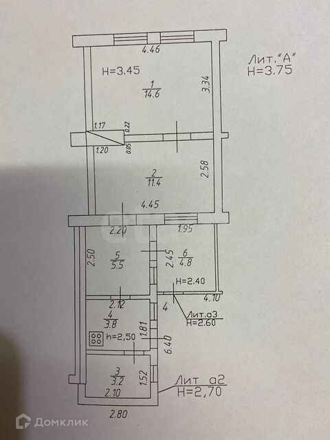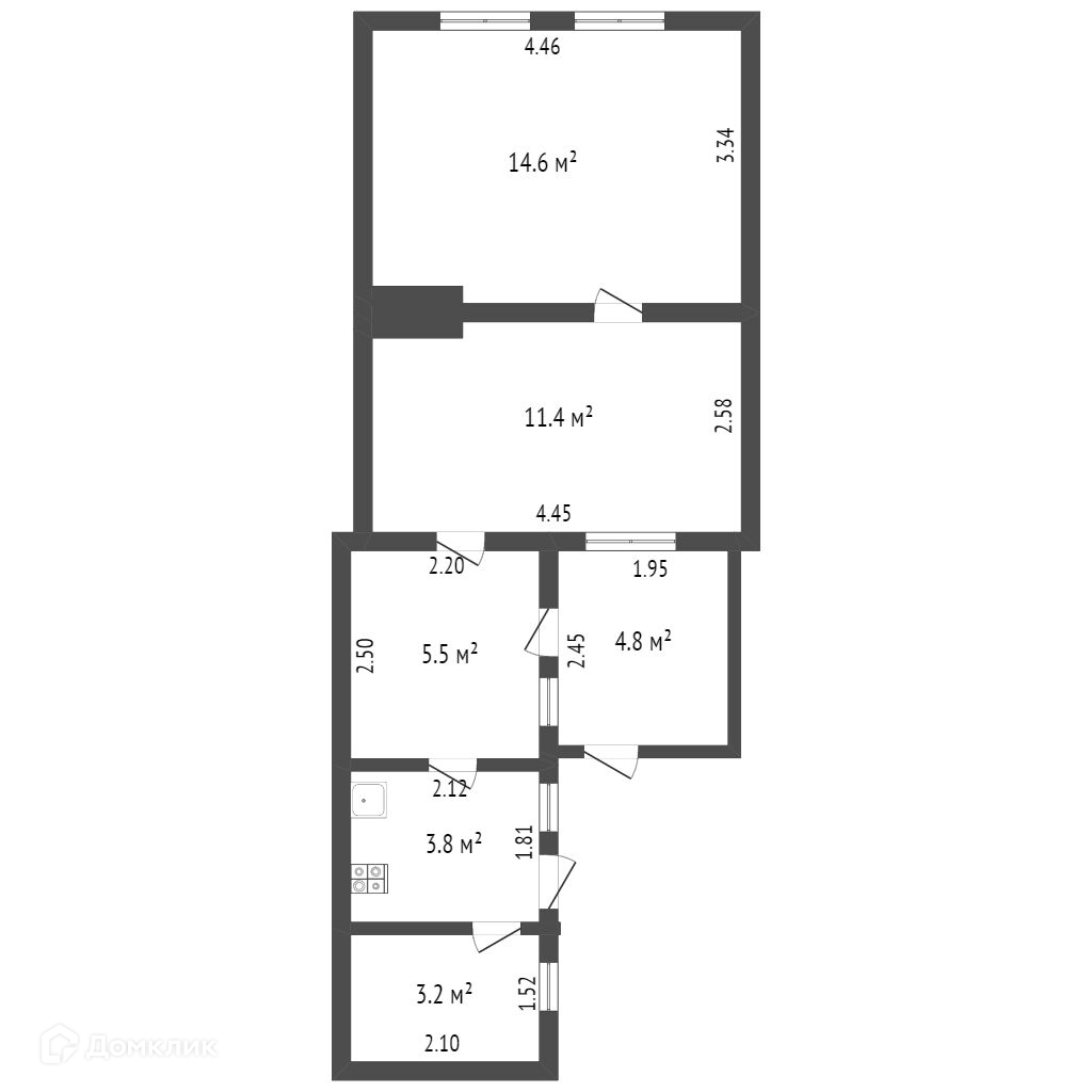 Общая площадь 43.3 м2