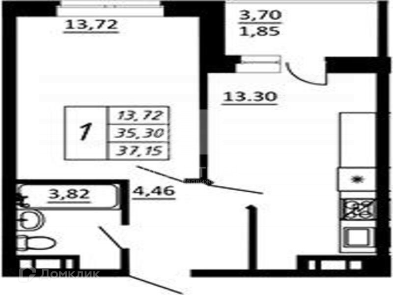 Общая площадь 46.17 м2
