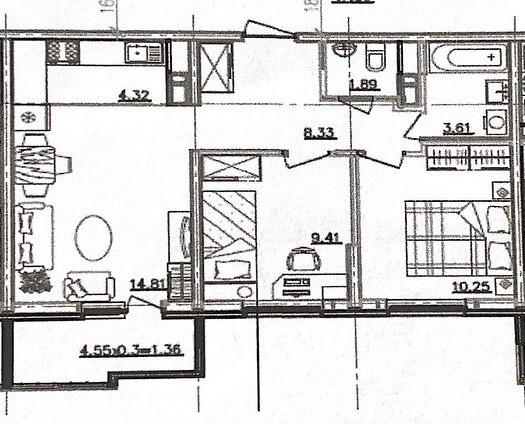 Общая площадь 55 м2