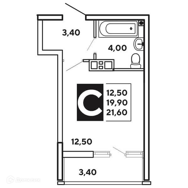 Общая площадь 22 м2