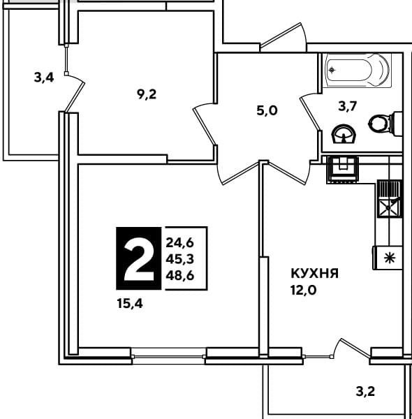 Количество комнат 2