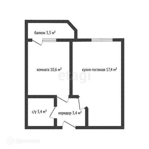 Общая площадь 34.8 м2
