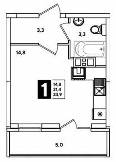 Общая площадь 23.9 м2