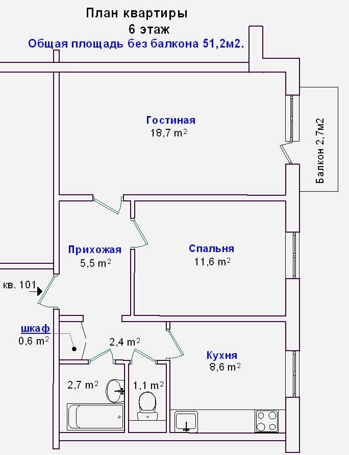 Балкон, лоджия 1 балкон