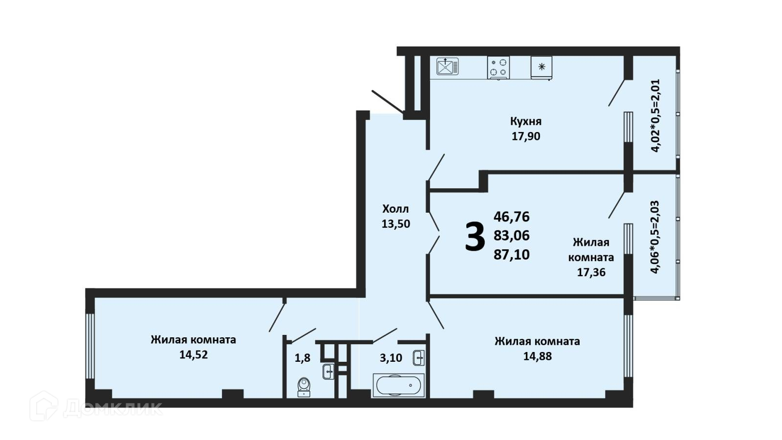 Арт. 58022648 Продается т шикарная 3-х ккв. «бабочка» от подрядчика, в монолитно-кирпичном жилом комплексе класса «Комфорт+», Квартира расположена на 9 этаже 16-ти этажного дома. Площадь квартиры 87,10 м.2. Кухня-гостинная 17,9 м2. Комнаты 17,36+14,88+14,52 кв.м. Санузел раздельный. Дом обладает высокой энергоэффективностью, шумо - и звукоизоляцией, толщина стен 55 см. Дом сдан в 2022 г.